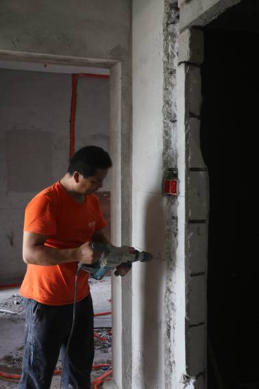 敲磚是衛(wèi)浴拆改的關鍵施工,拆除過程中需要注意舊的防水層一般不打掉,在敲磚后,在原有的防水層上面,再薄薄做一層防水,以提高衛(wèi)浴的防水能力。敲插座和龍頭附近的瓷磚時,要慢慢敲,小心摸清電線和水管的走向,以防損壞電線和水管。