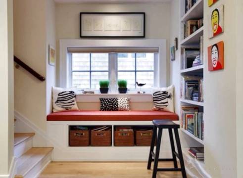 飄窗一定要夠大,達(dá)到2米長(zhǎng),近1米寬,房間又比較小,就適合把飄窗設(shè)計(jì)成一張小小的單人床。小女孩一般把飄窗掛上粉色或者碎花棉布窗簾,保留原有的大理石臺(tái)面鋪上床墊,再擺上幾個(gè)自己喜歡的碎花抱枕和卡通布絨玩具,就可以直接將飄窗改成了臥榻。成熟點(diǎn)的女人則偏愛(ài)紫色,放上幾個(gè)可愛(ài)的抱枕,旁邊擺上一盞香熏燈,一臺(tái)迷你的小音響,偶爾閑暇時(shí)閉上眼睛聽(tīng)聽(tīng)音樂(lè),抱著布絨娃娃慵懶地窩上一個(gè)下午,回憶過(guò)去想象未來(lái),說(shuō)不定就能找到初戀的感覺(jué)。